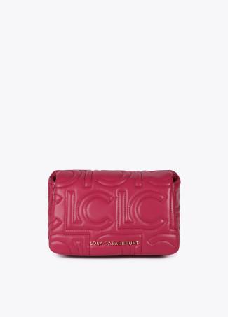 Elegante bandolera acolchada con logotipo en relieve. Efecto piel de alta calidad con asa de cadena y correa ajustable. Cierre magnético para mayor seguridad.