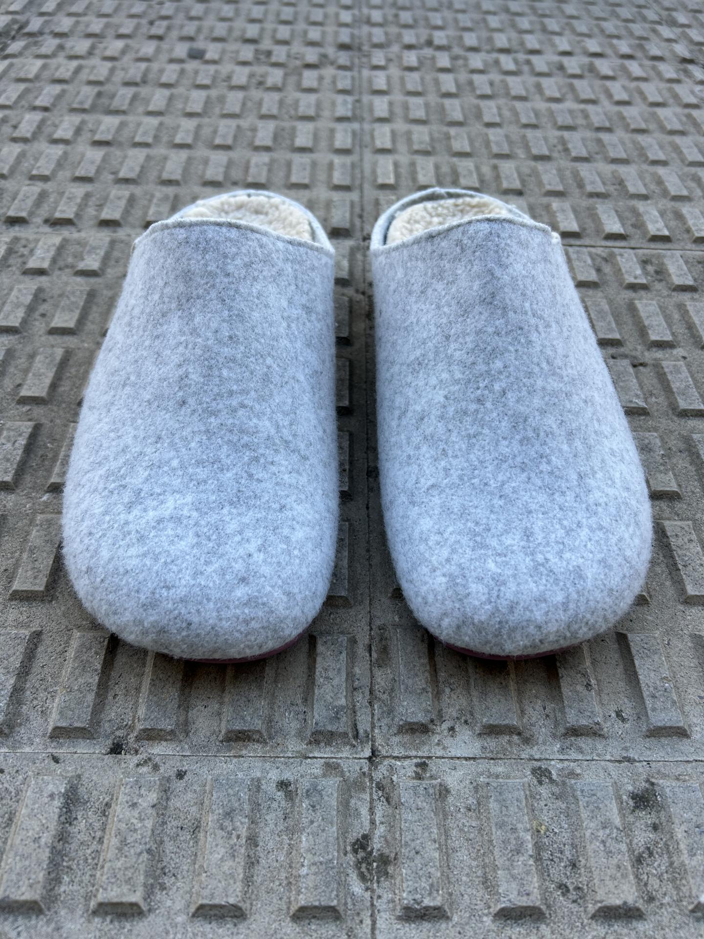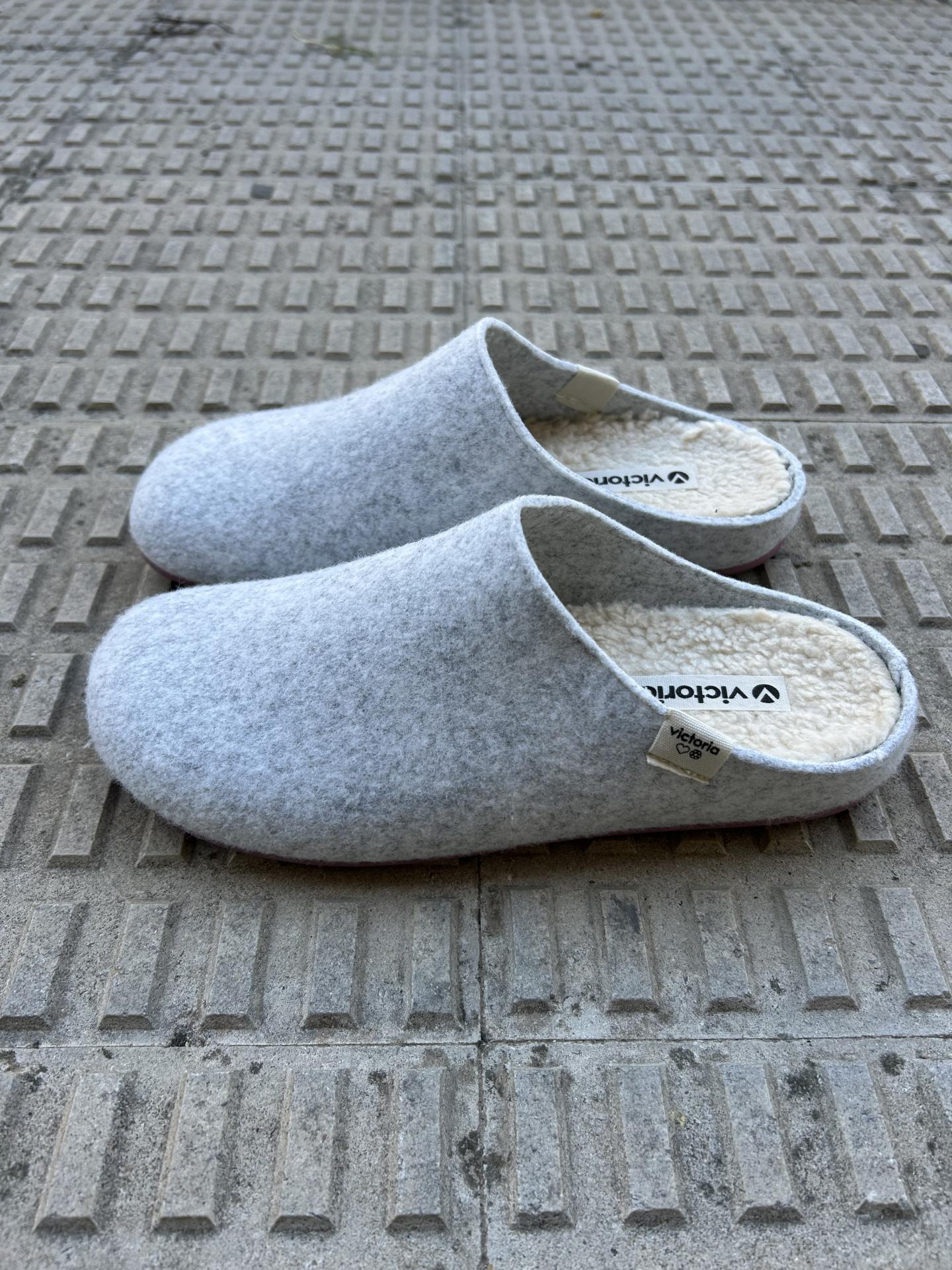 Zapatillas de casa color hielo para mujer destalonadas. Fabricadas en España en fieltro a partir de PET reciclado.