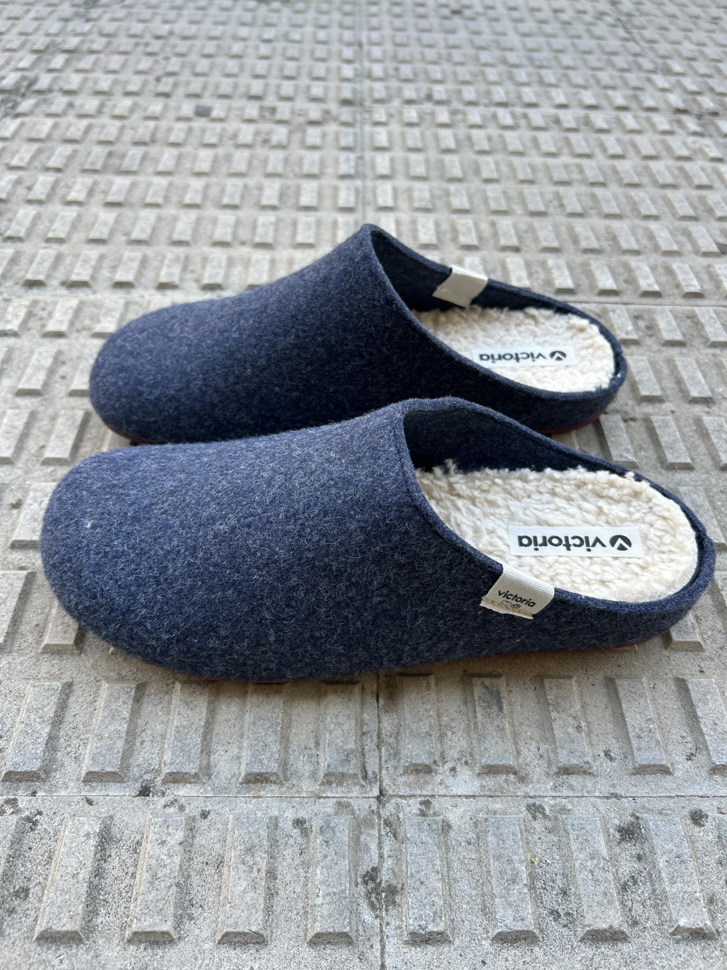 Zapatillas de casa color marino para mujer destalonadas. Fabricadas en España en fieltro a partir de PET reciclado.