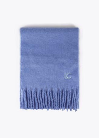Bufanda azul con flecos gruesos