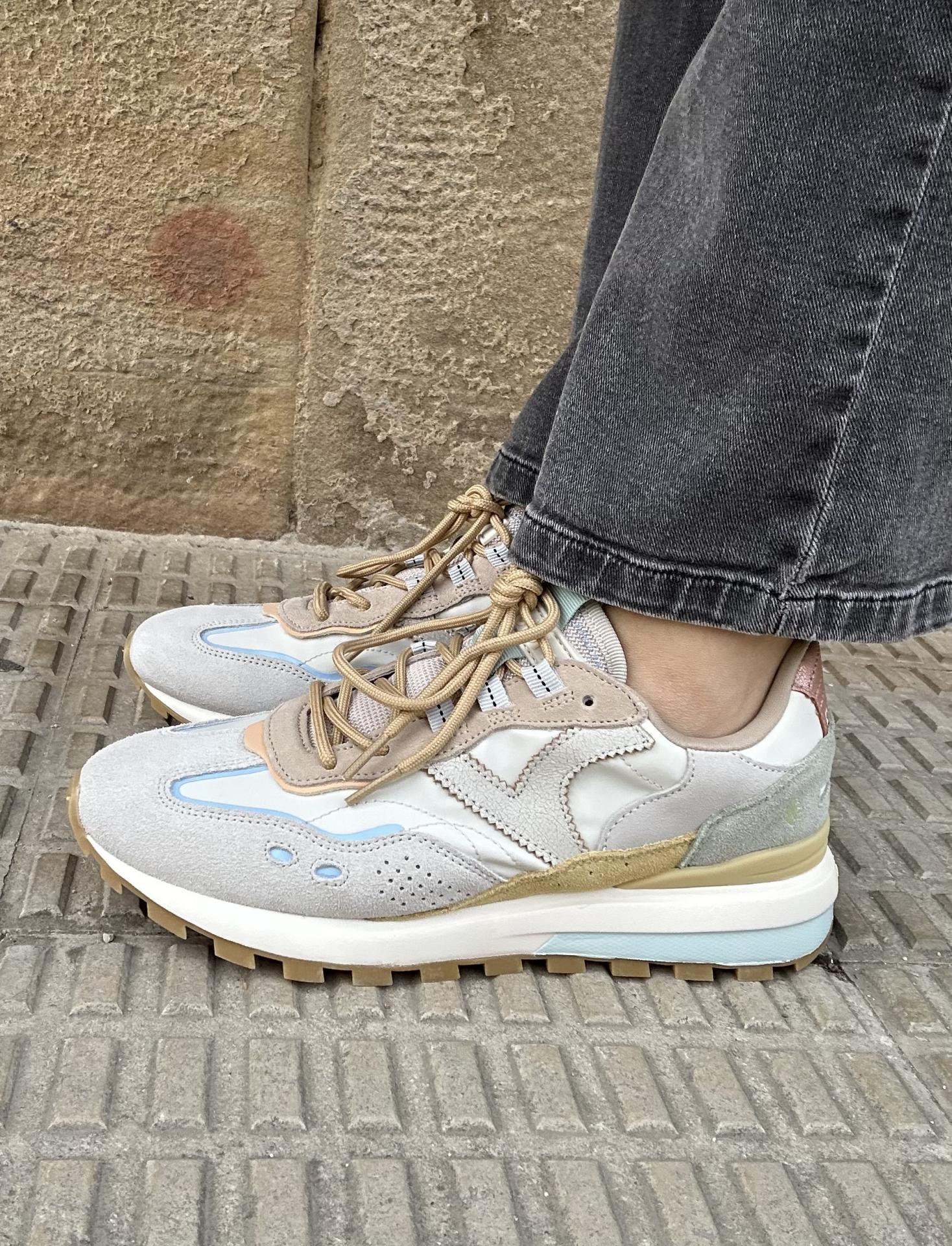 Estas sneakers para mujer son la combinación perfecta de colores y diferentes texturas incorporando además detalles únicos en pespuntes y cordones redondeados.
