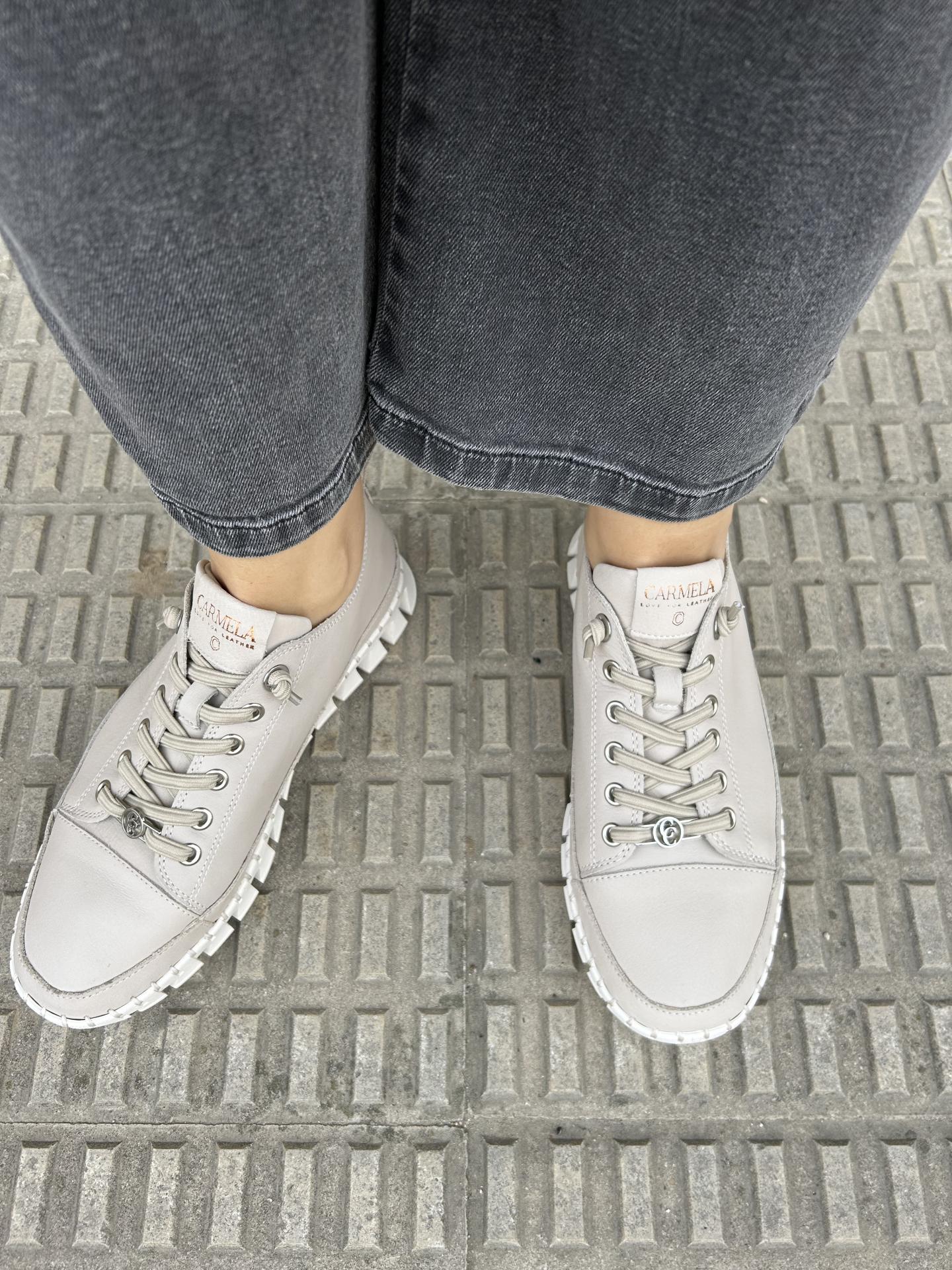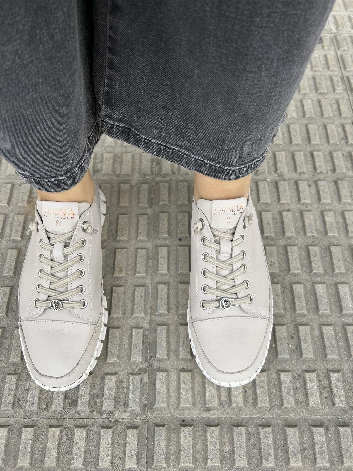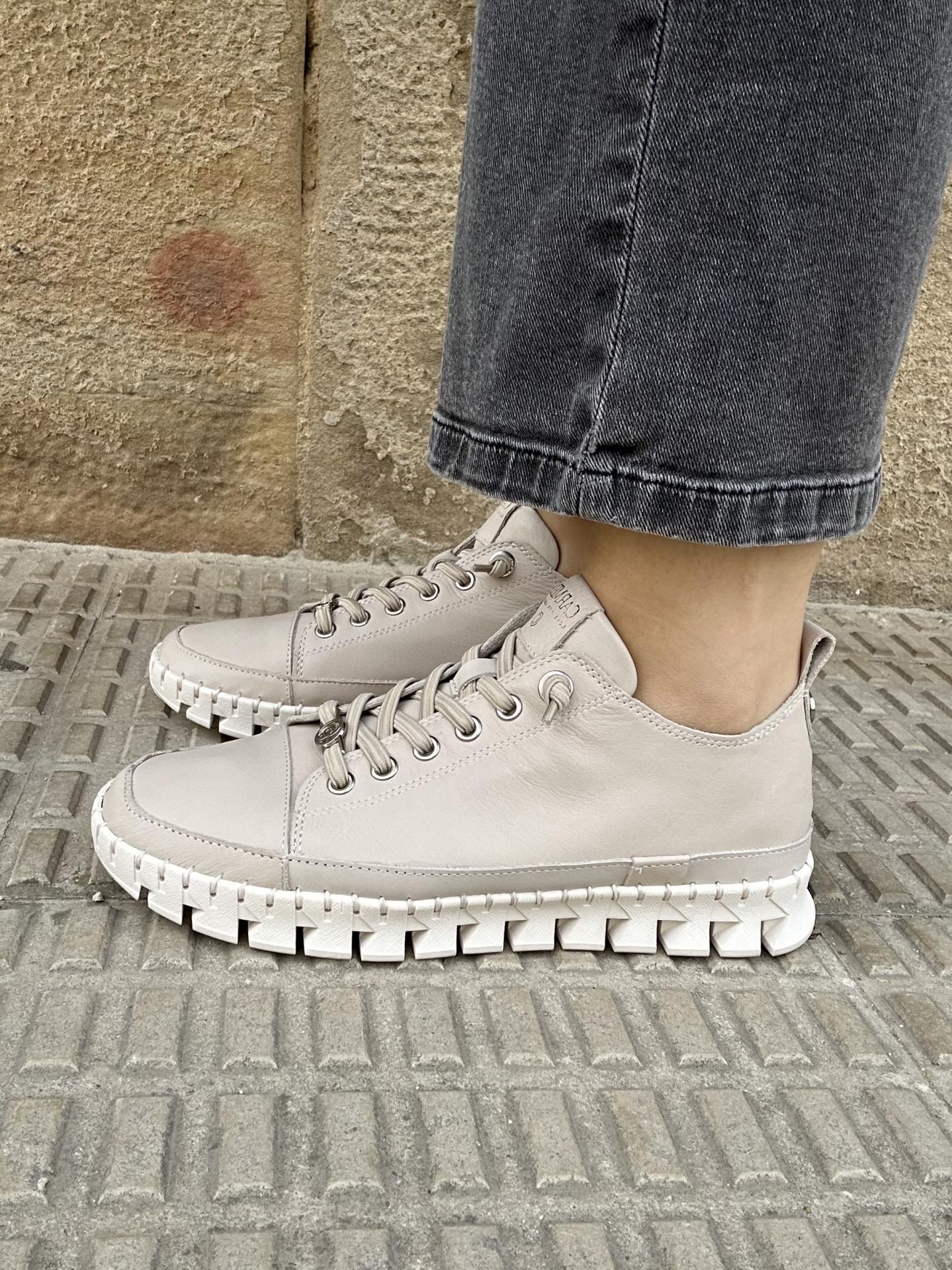 Zapatilla casual de mujer, de la marca Carmela fabricada en piel color beige de alta calidad.