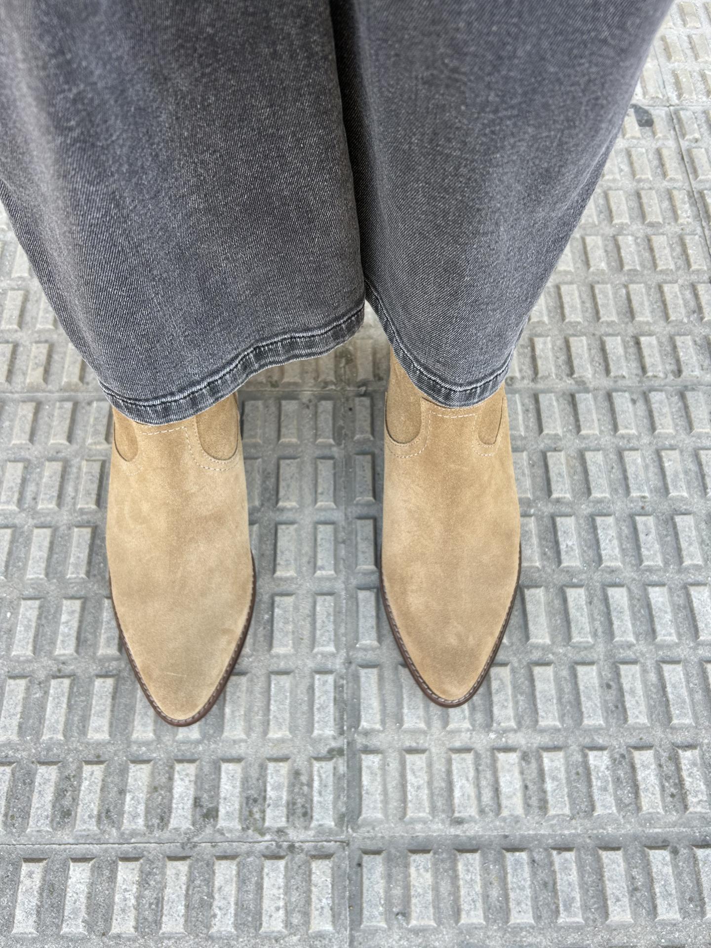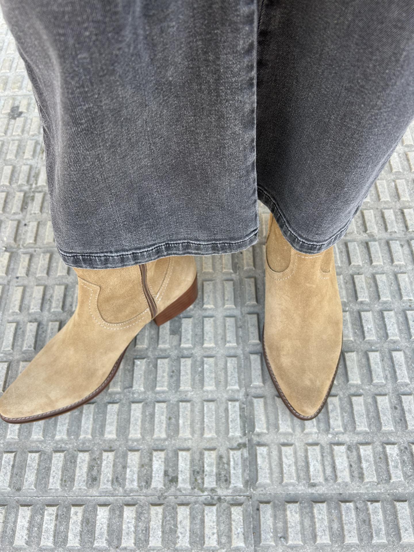 Botín cowboy con terminación en punta y tacón angulado.