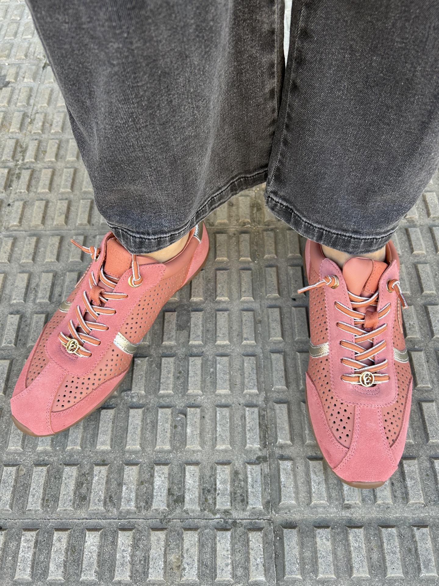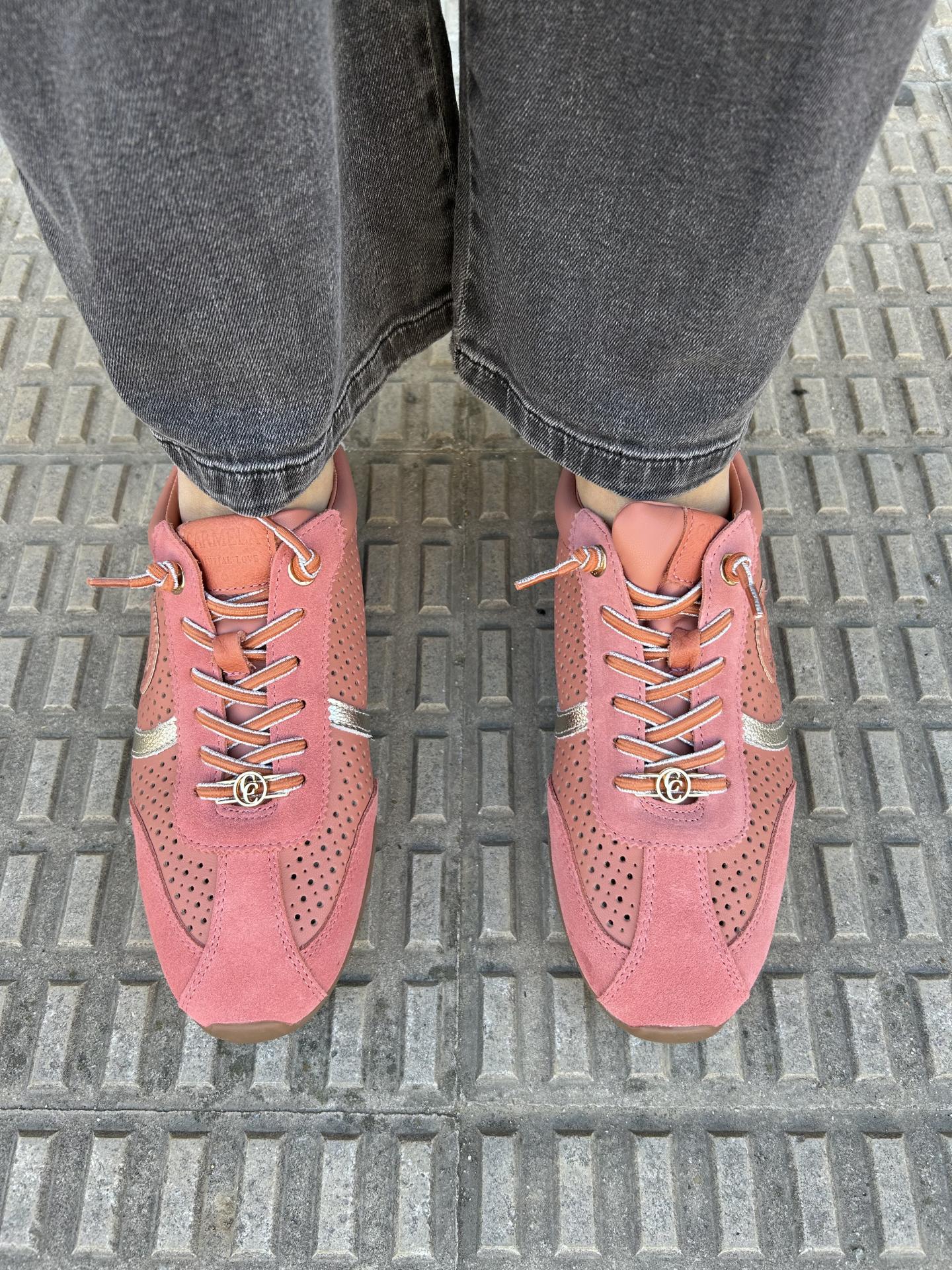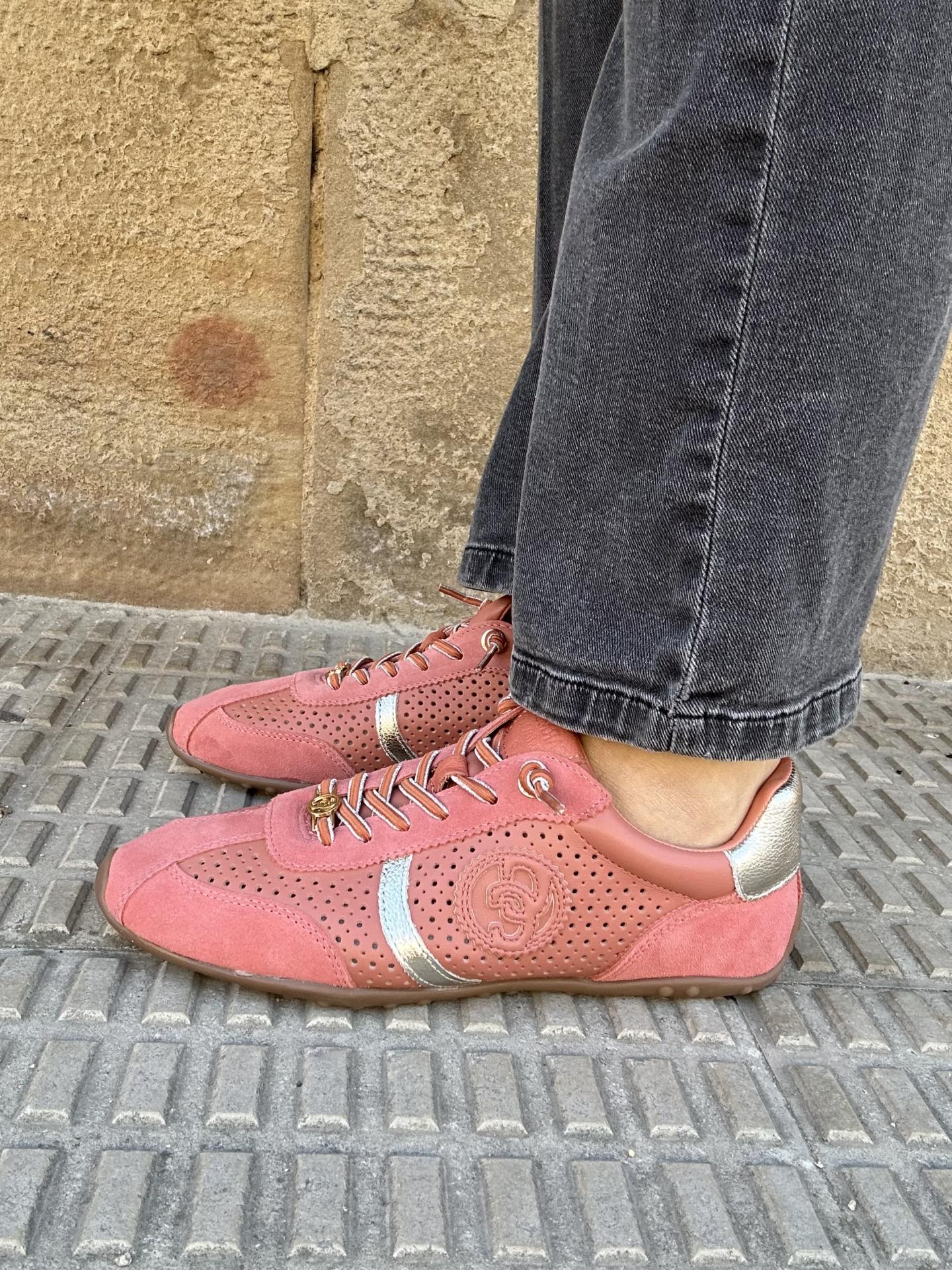 Zapatilla de mujer, marca Carmela fabricado en serraje color coral de alta calidad.