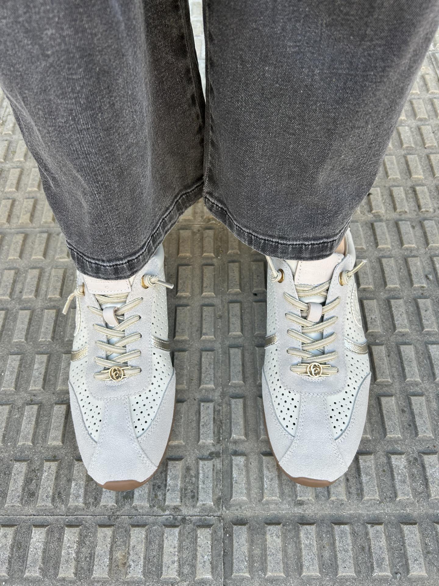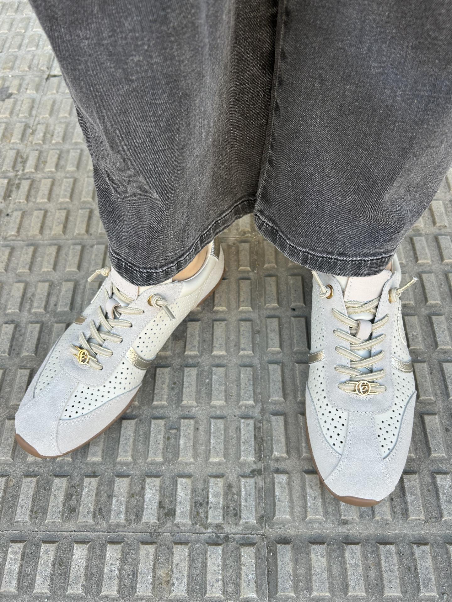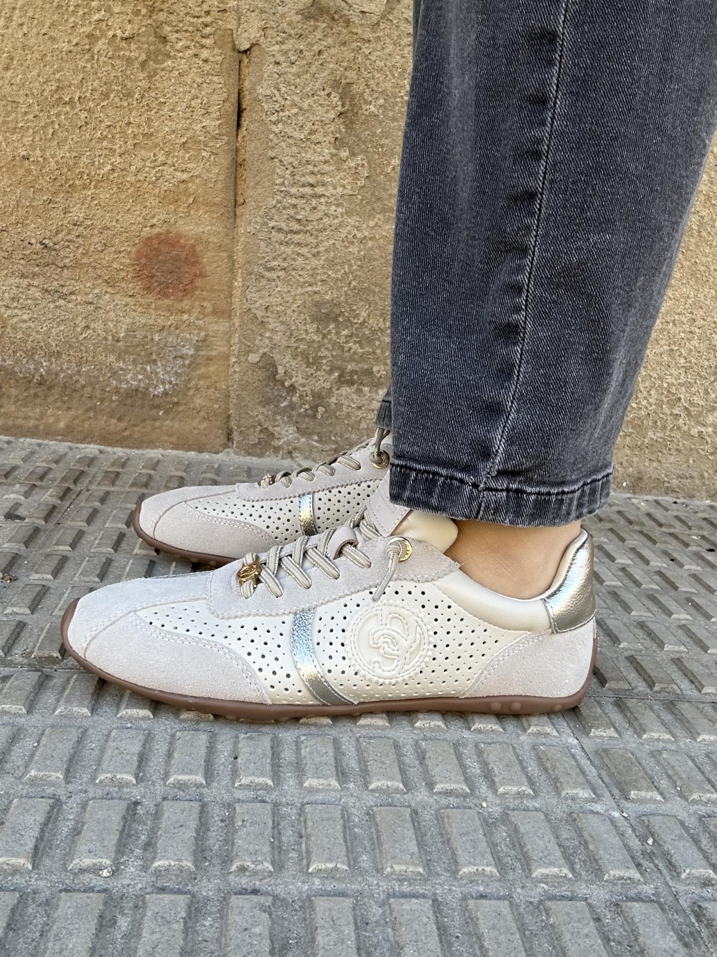 Zapatilla de mujer, marca Carmela fabricado en serraje color hielo de alta calidad.