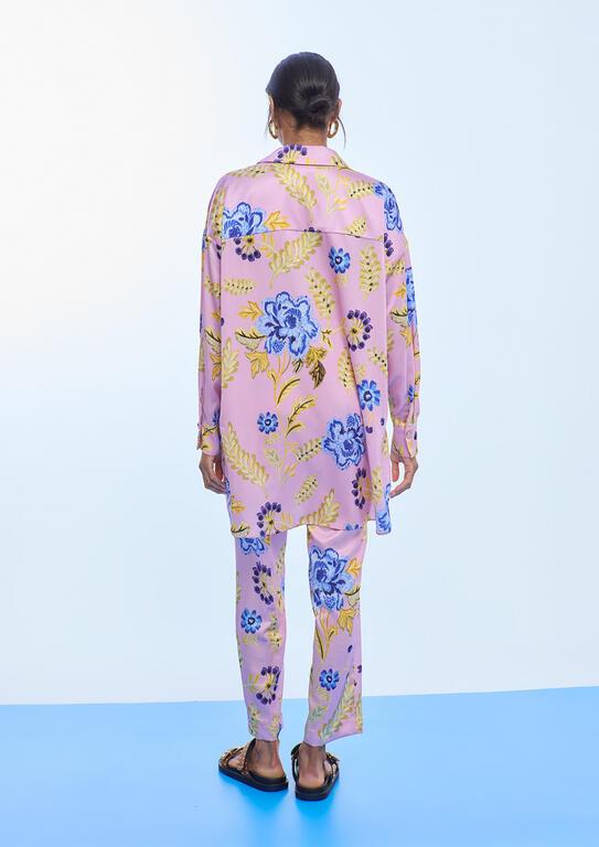Camisa satinada oversize estampado flores