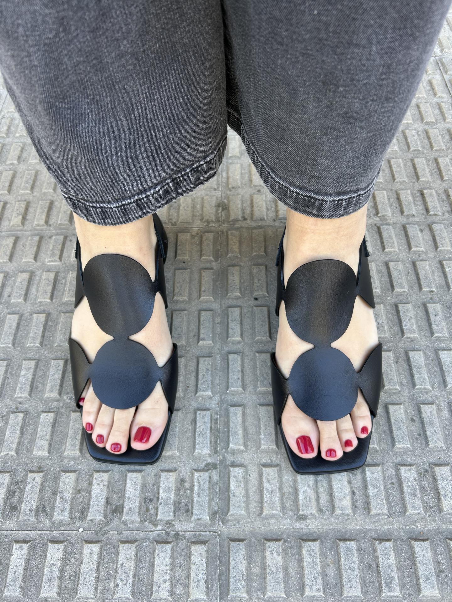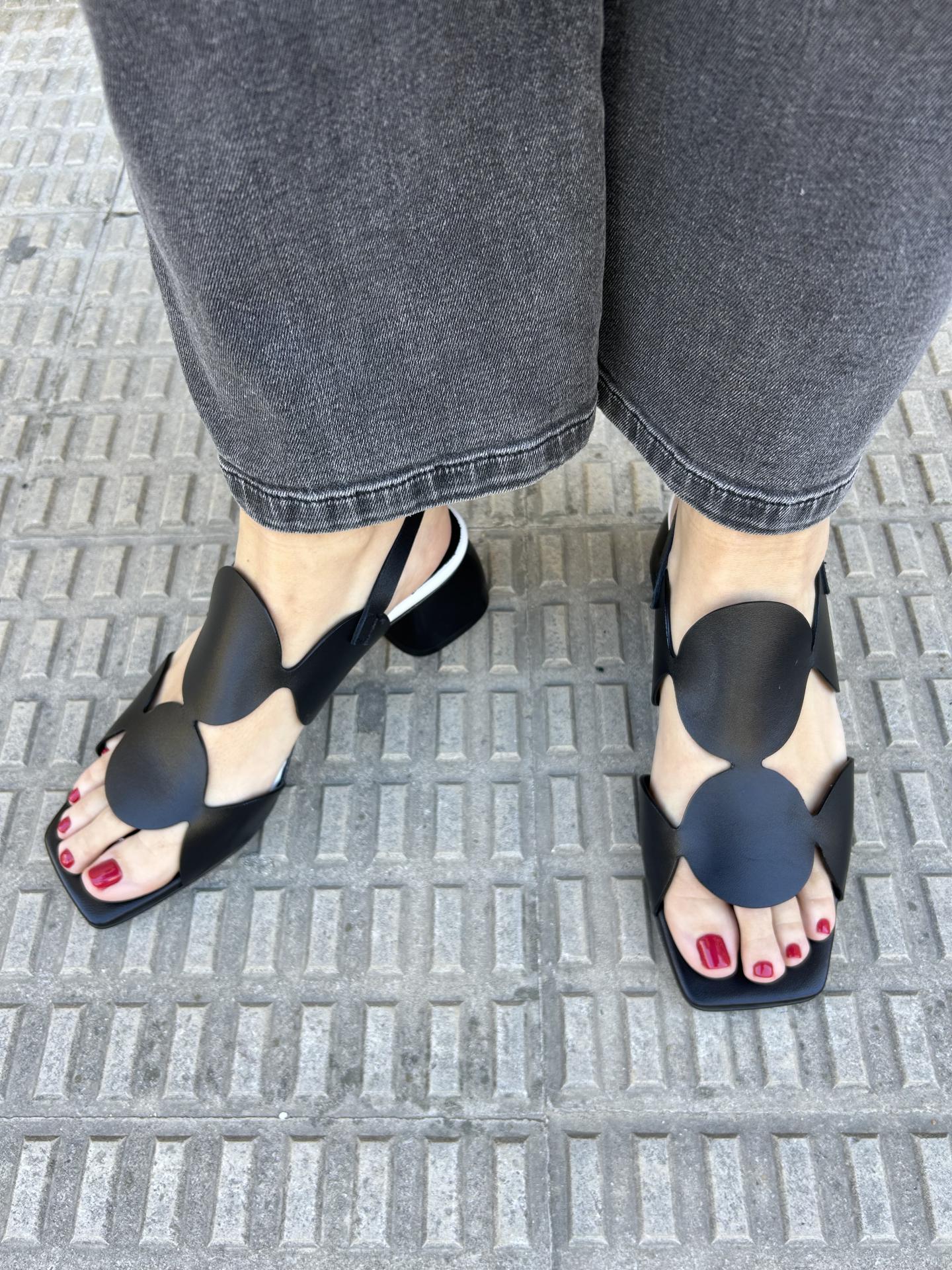 Sandalia con diseño frontal de recortes curvos y geométricos que abrazan el empeine creando un efecto visual fascinante. Tacón bloque con una altura de 5 cm que te garantiza una estabilidad absoluta y una postura perfecta.
