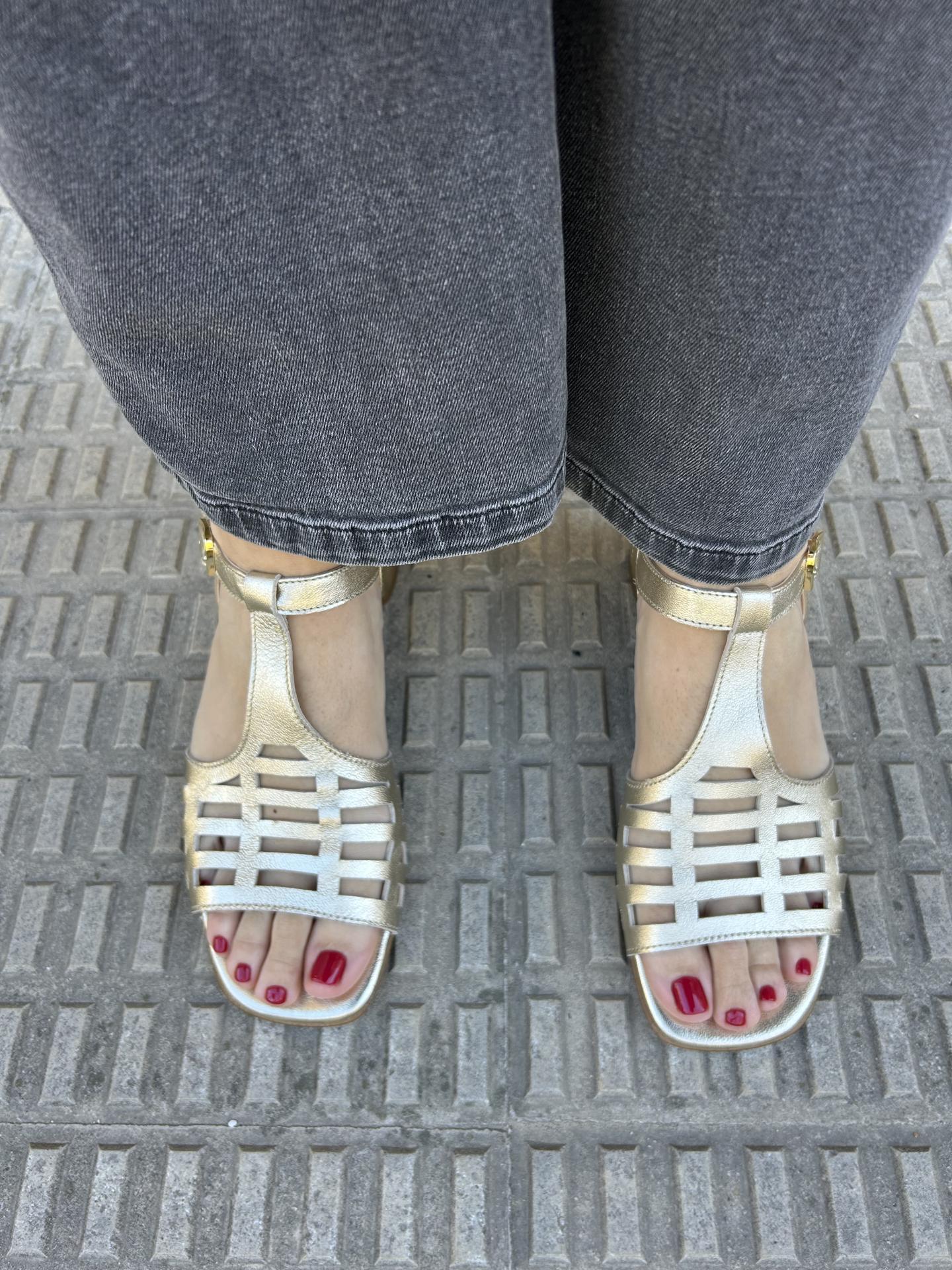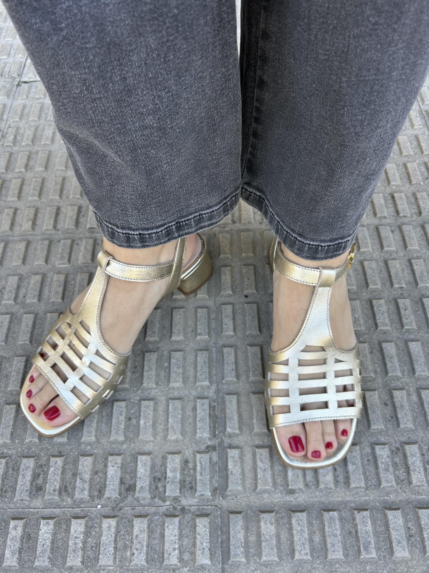 Tacon ancho de 5cm de altura y suela de cuero antideslizante