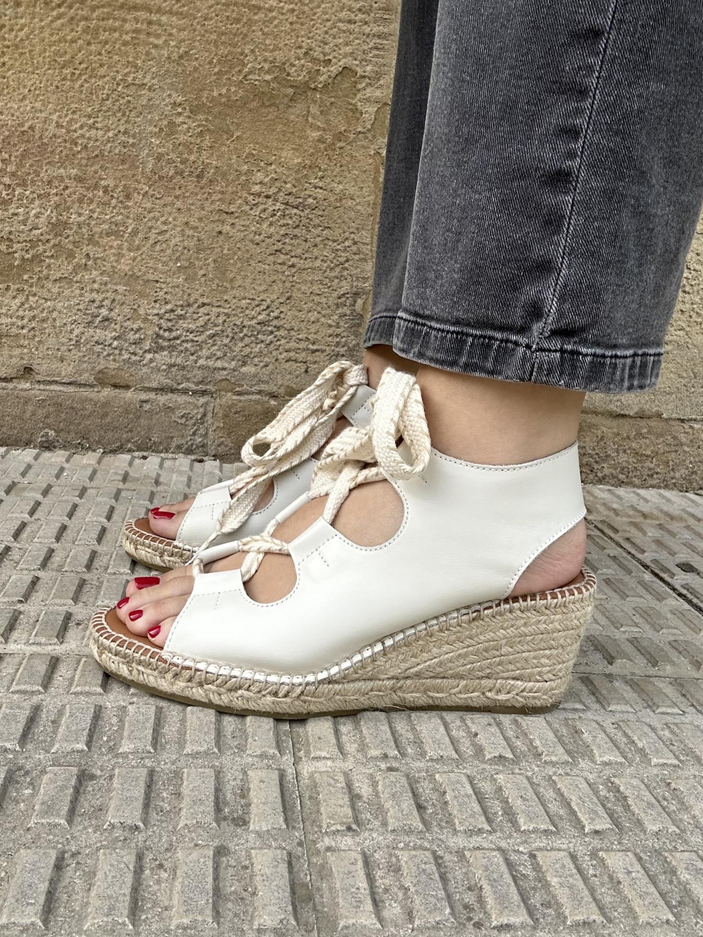 Comodidad, durabilidad y versatilidad de un calzado 100% español.Alpargata de cuña de 7 cm, fabricada en piel crudo de la mejor calidad y con plantilla de gel acolchada.